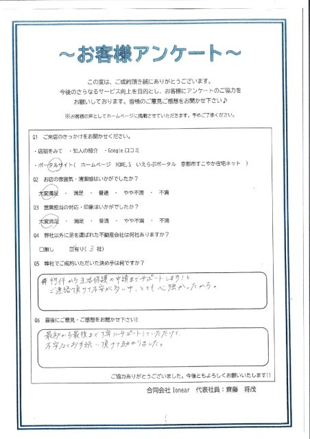 京都市の生活保護対応の賃貸|合同会社Ionear > お客様の声一覧 > 南丹市 M.O様