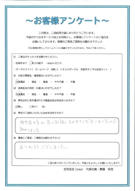 京都市の生活保護対応の賃貸|合同会社Ionear > お客様の声一覧 > 右京区 T.Y様